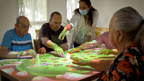 EyeClick ha demostrado que puede proporcionar diversión, descanso e incluso ejercicio, todo muy necesario para la población mayor, que ahora puede juntarse alrededor de la mesa en la que se proyecta el juego y participar todos juntos, sin contacto físico entre ellos o con el personal.