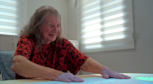 El proyector interactivo Obie utilizado en un hogar de ancianos.