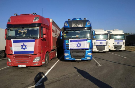 Camiones que transportan equipos para el hospital de campaña israelí en Ucrania (Foto: equipo de construcción del hospital Kohav Meir)
