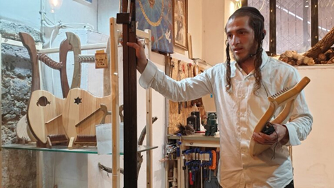En una empresa conjunta con Mordechai Baluka del Museo de los Salmos, Wiseman se hizo cargo de ese espacio vacío para dárselo a su hijo Natan (23), que fabrica guitarras de madera a mano desde los 15.