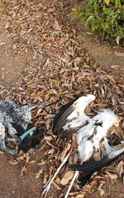 Una foto sin fecha de una cigüeña blanca muerta encontrada por un perro rastreador en el parque eólico de Sirin. (Autoridad de Parques y Naturaleza de Israel)
