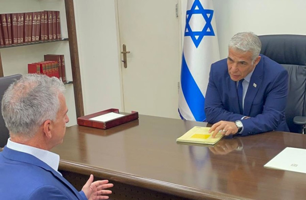 El primer ministro Yair Lapid se reúne con el jefe del Mossad, David Barnea, el 25 de agosto. (Foto: OFICINA DEL PRIMER MINISTRO)