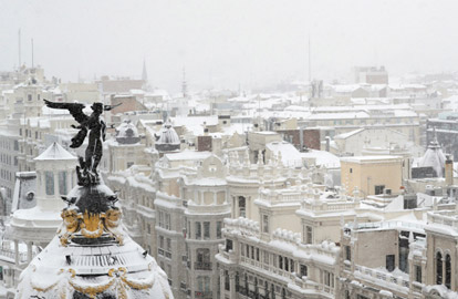 Vista desde la azotea del centro cultural Círculo de Bellas Artes durante una fuerte nevada en Madrid (Foto: REUTERS/SUSANA VERA)