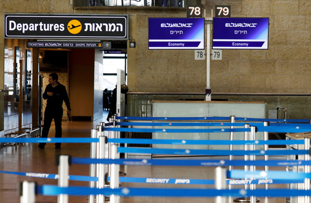 Mostradores de El Al Israel Airlines vacíos en el aeropuerto internacional Ben Gurion en Lod, cerca de Tel Aviv, Israel, el 27 de febrero de 2020. (Foto: AMIR COHEN/REUTERS)