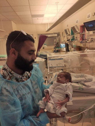 El profesor Gil Klinger, director de la unidad de cuidados intensivos neonatales del hospital, voló a Chipre junto con su equipo y el equipo médico necesario para transferir al bebé de manera segura. El hermano del bebé, de 21 años, Aref, viajó con él.