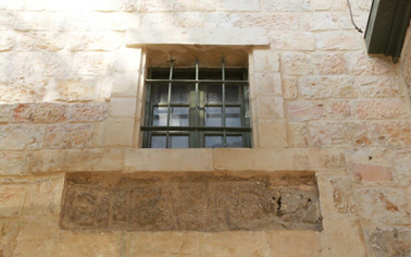 Mientras que el original se encuentra en un museo en Estambul, esta fiel réplica del hito de Gezer se encuentra en la pared de la casa del siglo XIX construida por el misionero y arquitecto Conrad Schick para su familia. (Shmuel Bar Am)