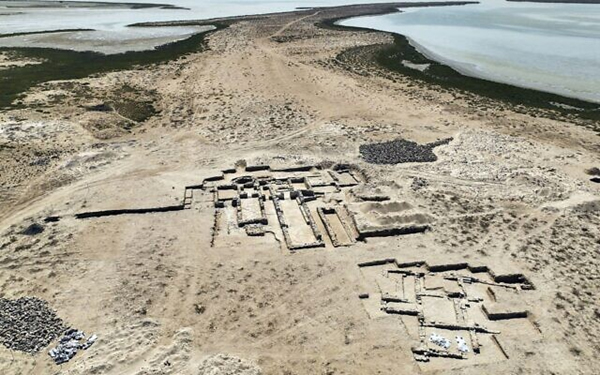 Esta fotografía del 14 de marzo de 2022 muestra un antiguo monasterio cristiano descubierto en la isla de Siniyah en Umm al-Quwain, Emiratos Árabes Unidos. (Nasser Muhsen Bin Tooq/Departamento de Arqueología y Turismo de Umm al-Quwain vía AP)