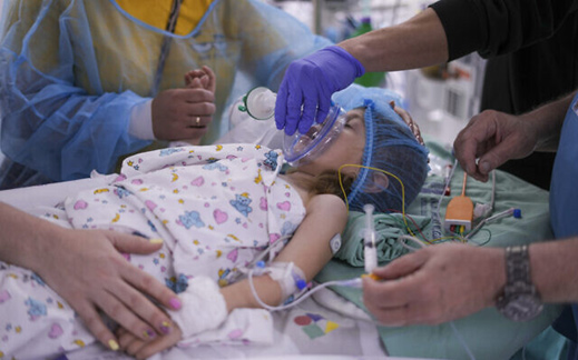 Imagen ilustrativa: Karina Andreiko, una niña ucraniana de 5 años, es preparada para una cirugía cardíaca por un equipo dirigido por el Dr. Sagi Assa, jefe de cardiología pediátrica invasiva de la organización sin fines de lucro Save a Child’s Heart, en el Centro Médico Wolfson en Holon, cerca de Tel Aviv, Israel, 2 de mayo de 2022. (Foto AP/Ariel Schalit)