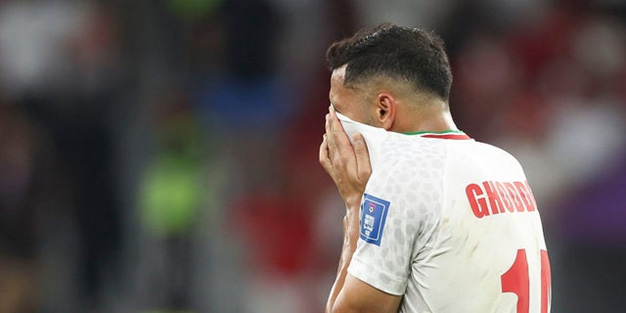 Un abatido Saman Ghoddos de Irán cuando su equipo es eliminado de la Copa del Mundo por Estados Unidos en el estadio Al Thumama el 29 de noviembre de 2022 en Doha, Qatar. (Mateo Ashton/AMA/Getty Images)
