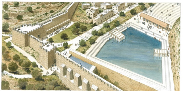 Representación de la Piscina de Siloé, período del Segundo Templo (Shalom Kveller, Archivos de la Ciudad de David)
