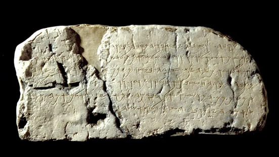 La inscripción de Siloé que data del siglo VIII AEC que se encuentra en el Túnel de Ezequías describe en escritura hebrea temprana el drama de cavar el túnel. (Archivos de Zeev Radovan Ciudad de David)