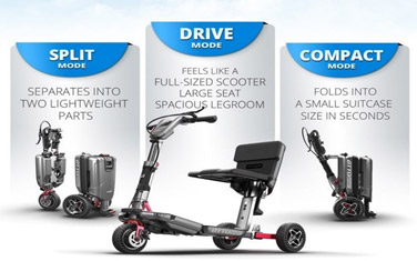 Cuando viaja, el ATTO se divide fácilmente en dos partes livianas – una característica que permite a los usuarios colocarlo en la cajuela de un automóvil o en el compartimiento de almacenamiento superior de un avión. Hablando de volar – los ATTO son los únicos scooters aprobados para volar en el mundo hoy en día. Gracias al diseño avanzado, los usuarios pueden subirse al avión y llegar a su asiento. Las dos partes separadas se pueden guardar fácilmente en los compartimentos superiores, e incluso sus baterías se pueden llevar a bordo. Esto es revolucionario para las personas que confían en sus ruedas para moverse por todas partes y que no quieren sentirse restringidas o que necesitan ayuda.