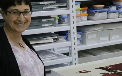 Dra. Orit Shamir en la sala de almacenamiento de hallazgos orgánicos en la Autoridad de Antigüedades de Israel, Jerusalén. (Autoridad de Antigüedades de Israel/Berit Hildebrandt)