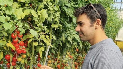 Shai Torgeman, de la Universidad Hebrea de Jerusalem, en uno de los invernaderos de investigación de la universidad. (The Media Line)