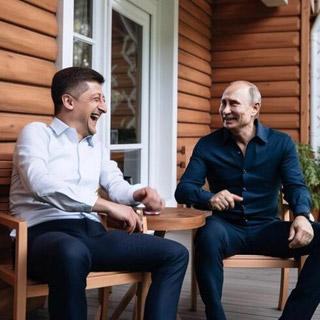 Zelenski y Putin en un improbable encuentro y sonrientes. (Midjourney)