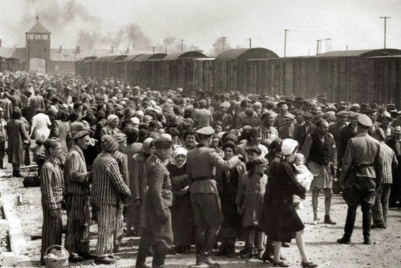 «Selección» de judíos húngaros en la rampa de Auschwitz II-Birkenau en la Polonia ocupada por los alemanes, alrededor de mayo de 1944. Los judíos fueron enviados a trabajar o a la cámara de gas. La fotografía forma parte de la colección conocida como Álbum de Auschwitz de Yad Vashem. Foto: Wikipedia – Dominio Público