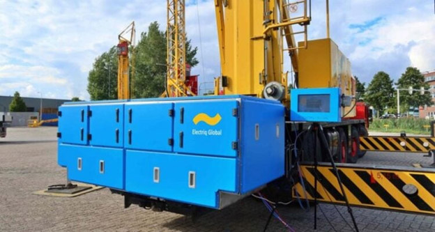 El generador de polvo de Electriq se transporta fácilmente en una grúa móvil en los Países Bajos. (Cortesía de Electriq)