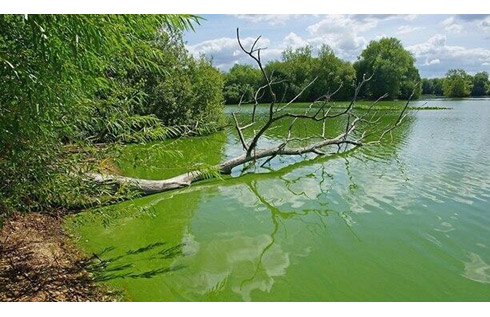 Las cianobacterias y el característico color verdoso.