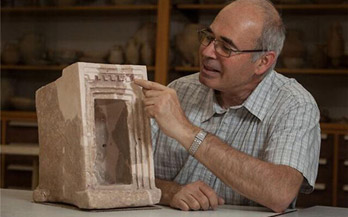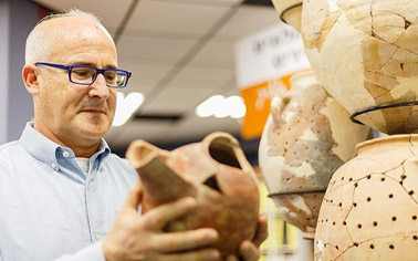 El prof. Aren Maeir en el laboratorio del Proyecto Arqueológico Tell es-Safi/Gat en la Universidad Bar Ilan (cortesía)