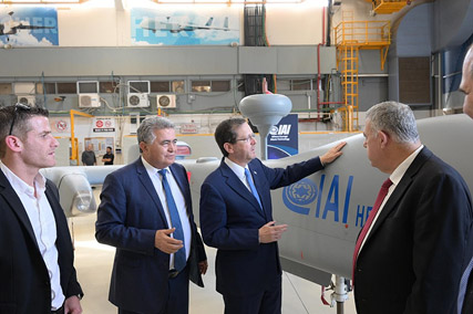 El presidente Isaac Herzog en una visita a la Israel Aerospace Industries, el organismo que abrirá un nuevo centro de investigación en Marruecos. Foto: Amos Ben Gershom/Government Press Office, CC BY-SA 3.0, via Wikimedia Commons.