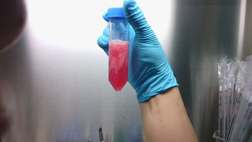 Tubo que contiene una donación de placenta, proveniente de una mujer voluntaria para el desarrollo de una investigación. Foto: Aidar Seralin/CC BY-SA 4.0, via Wikimedia Commons.