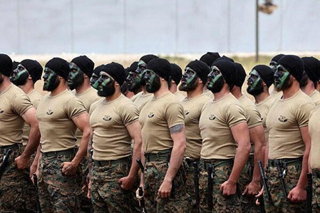 Combatientes libaneses de Hezbolá desfilan durante una gira de prensa en la aldea de Aaramta, en el sur del Líbano, en mayo de 2023.