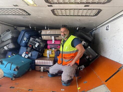 Rami Levi cargando equipaje en un avión.