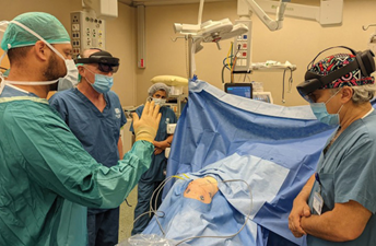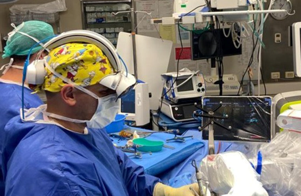 La experiencia de realizar una cirugía equipado con un auricular de RA se sintió como ser un piloto de combate”, recordó. “Tenía toda la información vital del paciente, incluidas las imágenes de la TC, mostradas directamente frente a mí. Podía mirar hacia un lado y ver la alineación de los tornillos quirúrgicos que había planeado antes del procedimiento y luego mirar hacia abajo y ver el campo quirúrgico ampliado. La experiencia me ayudó a realizar el procedimiento exactamente como lo planeé, y solo a hacer los ajustes que podría haber considerado necesarios a medida que se desarrollaba la cirugía”.