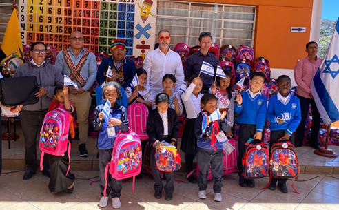 La Embajada de Israel entregó 272 kits de útiles escolares y mochilas a los niños de la Unidad Educativa Intercultural Mushuk Yachay ubicada al norte de Quito.