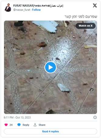 Hacer clic en el link para ver el video: https://twitter.com/kann_news/status/1712948304235901229?ref_src=twsrc%5Etfw%7Ctwcamp%5Etweetembed%7Ctwterm%5E1712948304235901229%7Ctwgr%5Ed6aa0f0056738a18f59df69e026ee84ff9dbe59f%7Ctwcon%5Es1_&ref_url=https%3A%2F%2Fwww.timesofisrael.com%2Fidf-again-strikes-hezbollah-after-drones-from-lebanon-intercepted-over-north%2F