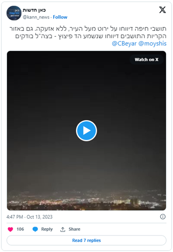 Las IDF dijeron que no se activaron sirenas en la ciudad, «de acuerdo con el protocolo».