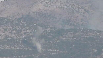 El humo se eleva sobre el lugar del impacto de los proyectiles de Hezbolá en la frontera con el Líbano.