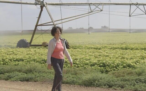 Shoshan Haran en un campo irrigado en el Kibbutz Be’eri. (David Rudoy)