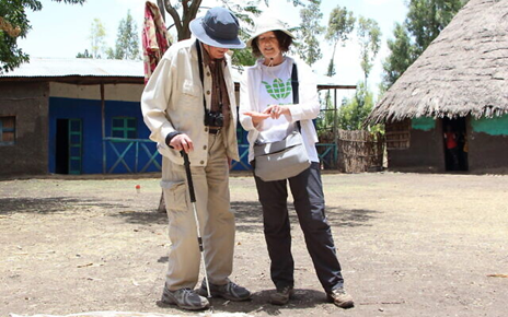 Abraham Haran, de 91 años, padre de Shoshan Haran, visita el proyecto de semillas en Etiopía. (Aviv Havrón)
