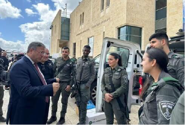 El ministro de Seguridad Nacional, Itamar Ben-Gvir, en el Centro de Comando de la Policía de Jerusalem.