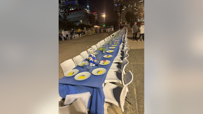 Una larga mesa simbólica de Shabat permanece vacía en Israel, esperando que los rehenes ocupen sus lugares.