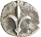 Reverso: Flor de lis, «Yehud» en hebreo antiguo.