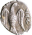 Anverso: Aguila, «Yehud» en hebreo antiguo
