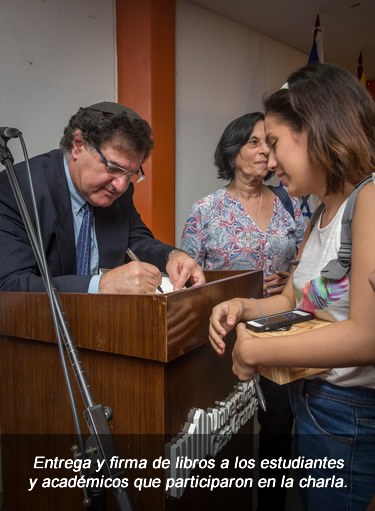 El escritor Gustavo Perednik estuvo presente el lunes 30 de mayo de 2016 en el auditorio de la Facultad de Ciencias Sociales y Humanísticas de la Escuela Superior Politécnica del Litoral, ESPOL, impartiendo una charla sobre su libro y entregando ejemplares a más de 150 estudiantes y académicos.