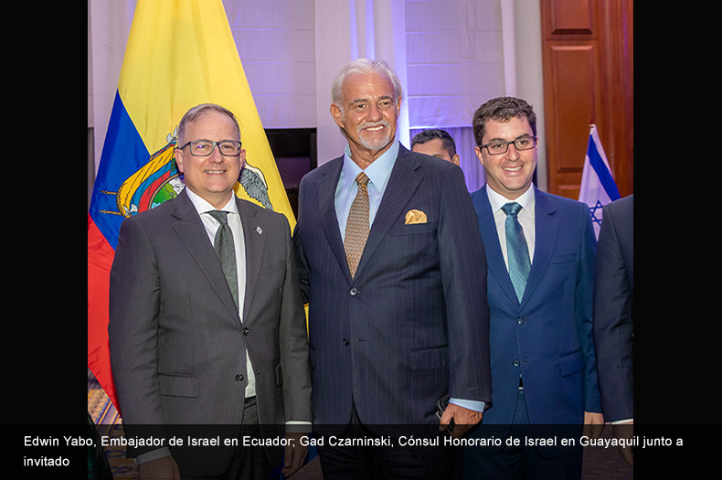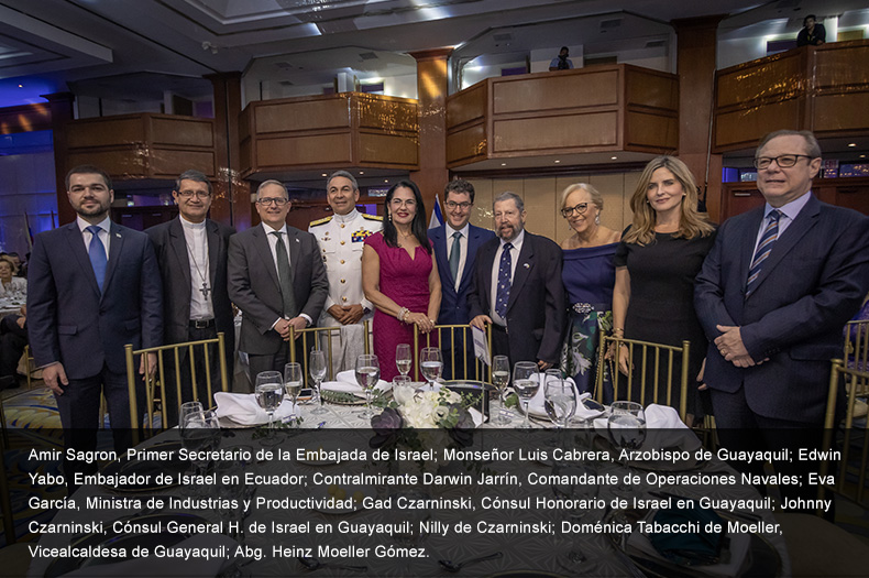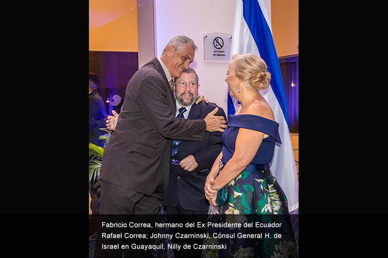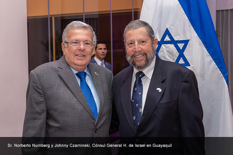 La bienvenida de los invitados estuvo a cargo del señor Johnny Czarninski, Cónsul General H. de Israel en Guayaquil, su esposa Nilly de Czarninski; Edwin Yabo, Embajador de Israel en Ecuador; GadCzarninski, Cónsul Honorario de Israel en Guayaquil recién nombrado; y Amir Sagrón, Primer Secretario de la Embajada de Israel..