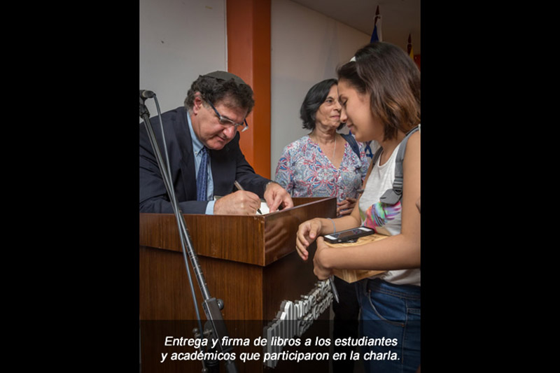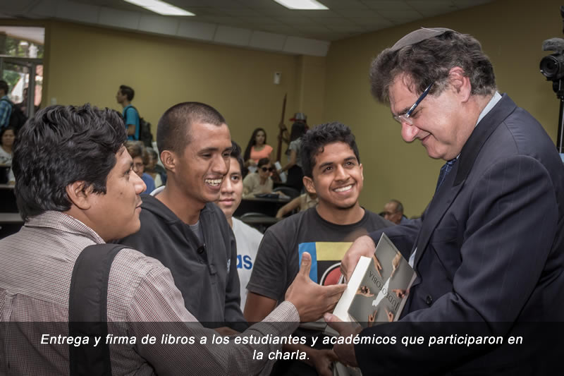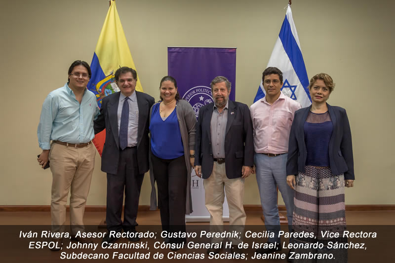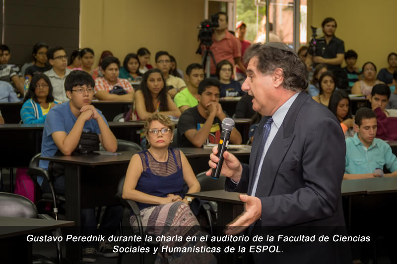 El escritor Gustavo Perednik estuvo presente el lunes 30 de mayo de 2016 en el auditorio de la Facultad de Ciencias Sociales y Humanísticas de la Escuela Superior Politécnica del Litoral, ESPOL, impartiendo una charla sobre su libro y entregando ejemplares a más de 150 estudiantes y académicos.