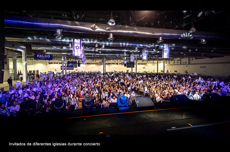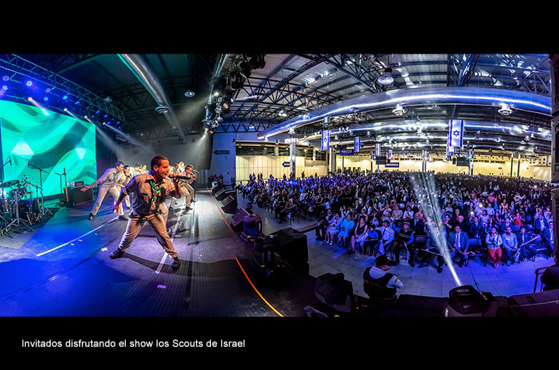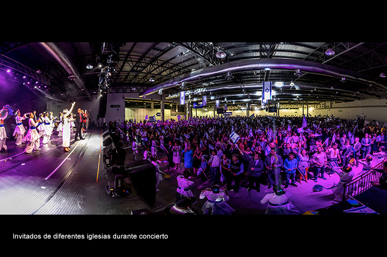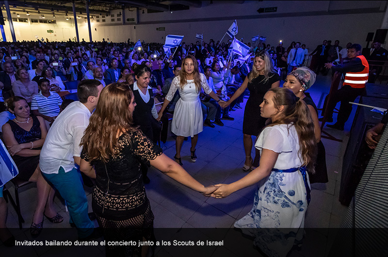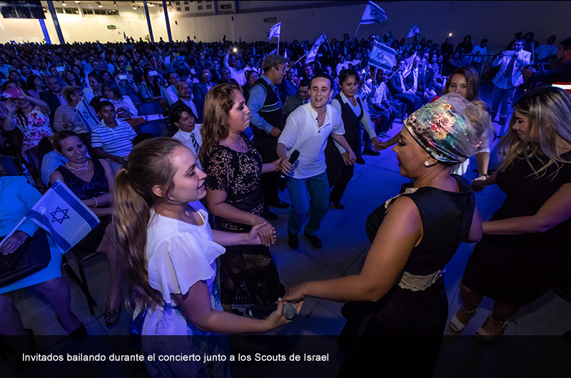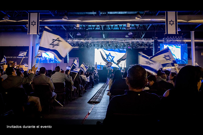 Los tres mil asistentes recibieron a su ingreso como obsequio banderas de Israel, además disfrutaron de momentos muy alegres, cantando y bailando.