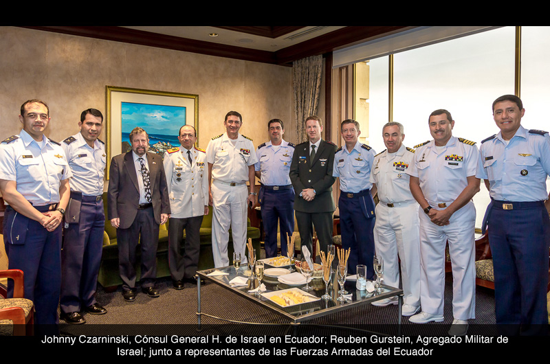 Con ocasión de la visita a esta ciudad del Agregado Militar de Israel, Coronel Reuben Gurstein, el Cónsul General H. de Israel organizó una reunión en uno de los salones privados del Bankers Club, a la que fueron invitados los principales oficiales de las tres ramas de las Fuerzas Armadas del Ecuador: Naval, Aérea y Terrestre.