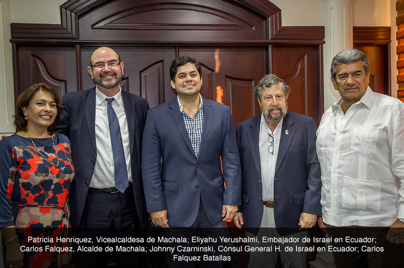 El día 17 de Septiembre, el Embajador de Israel, Eliyahu Yerushalmi y el Cónsul General H. de Israel en Guayaquil realizaron una visita protocolaria al Alcalde de Machala, Carlos Falquez Aguilar quien estuvo acompañado de su padre, el profesor Carlos Falquez Batallas y de la Vicealcaldesa de Machala, Licenciada Patricia Henríquez.