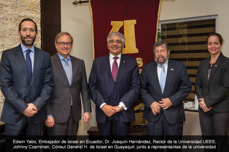 El Cónsul General H. de Israel en Guayaquil, Johnny Czarninski; y el Embajador de Israel en Ecuador, Edwin Yabo, visitaron la Universidad de Especialidades Espíritu Santo (UEES) en la cual mantuvieron una reunión con el rector Dr. Joaquín Hernández.