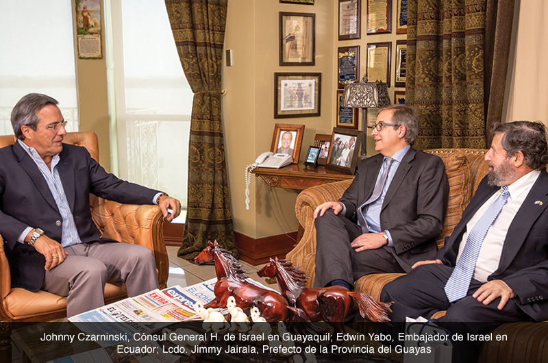 Edwin Yabo, Embajador de Israel en Ecuador y Johnny Czarninski, Cónsul General H. de Israel en Guayaquil, visitaron a las autoridades civiles más importantes de la ciudad; Ab. Jaime Nebot, Alcalde de Guayaquil; y el Lcdo. Jimmy Jairala, Prefecto de la Provincia del Guayas.